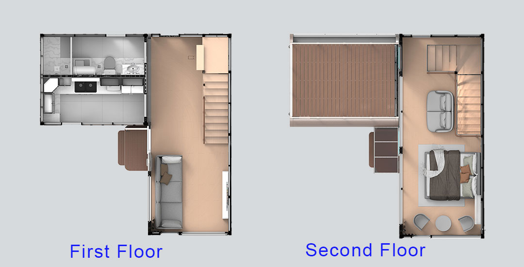 Aussie Dream MX-Double, this innovative duplex capsule house has two floors of living space in a compact, efficient design.